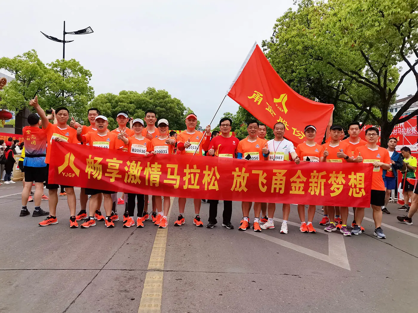 4月11日上午8时2021“金华银行杯”浙江兰溪第六届乡村马拉松赛激情开赛,同日上午7时30分,2021无锡马拉松暨大运河马拉松系列赛(无锡站)精彩开赛。公司员工积极报名,共有16名选手参加了兰溪马拉松赛事,公司董事长虞纪群更是带领两员大将前往无锡站参加无锡马拉松赛事。时隔两年“甬金战队”再次参赛,战队主题为“畅享激情马拉松,放飞甬金新梦想”,口号是“甬金、甬金、精益求精,甬金、甬金、行业领军”。